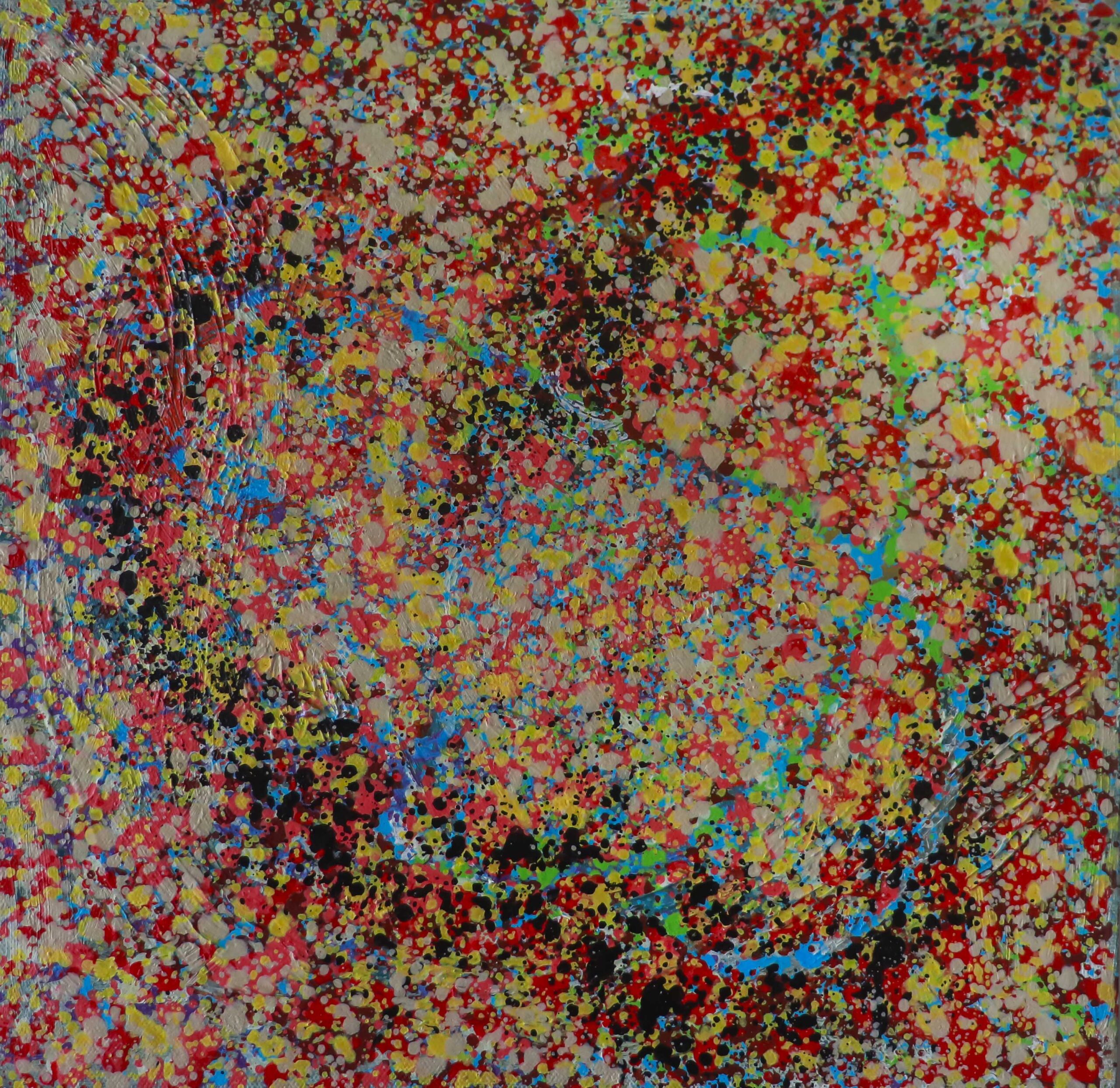 In works like Untitled, Alaskar immerses the viewer in a visceral field of energy—layers of crimson, jet black, cobalt blue, and hints of gold merge in a chaotic yet captivating harmony. The textured surface and explosive palette speak to raw emotion, subconscious expression, and the fluidity of human experience—true to the spirit of Abshart, meaning “flowing water” or “tears,” evoking both movement and catharsis.