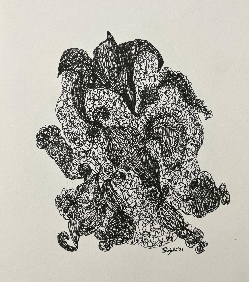 In the last two years of pandemic, artists and writers of all disci- plines have attempted to reimagine their language of expression, realign their though process, and renegotiate their position in the societal structure. Sujata Kar Saha having established her artistic output through abstraction in landscape for several years, have now liberated her sensory manifestations through a fresh spontane- ous series of drawings. Most in pen, ink and pencil, some infused with water colour with pen scratches, these drawings have given shape to Sujata’s burst of impulses through the flora-scape. The in- tricacies noticeable in its line and textures, and the intimacy of its sensory overlaps of hue, create an instinctive rush of creative energy, unmatchable to her prevailing premeditative paintings. This distinct series of drawings, weaves in the reasonable in the vulnerable, the journey in the incertitude, a method in this mad- ness of a pandemic, and the preservation of the fragile temporality. Therefore this series of drawings which has been produced since the last quarter of twenty-twenty and is being titled, PULSES IN IM- PULSE should be observed as the artist’s profound take on her free-spirited creative pulses, manifesting as the counter narrative- for dystopia.